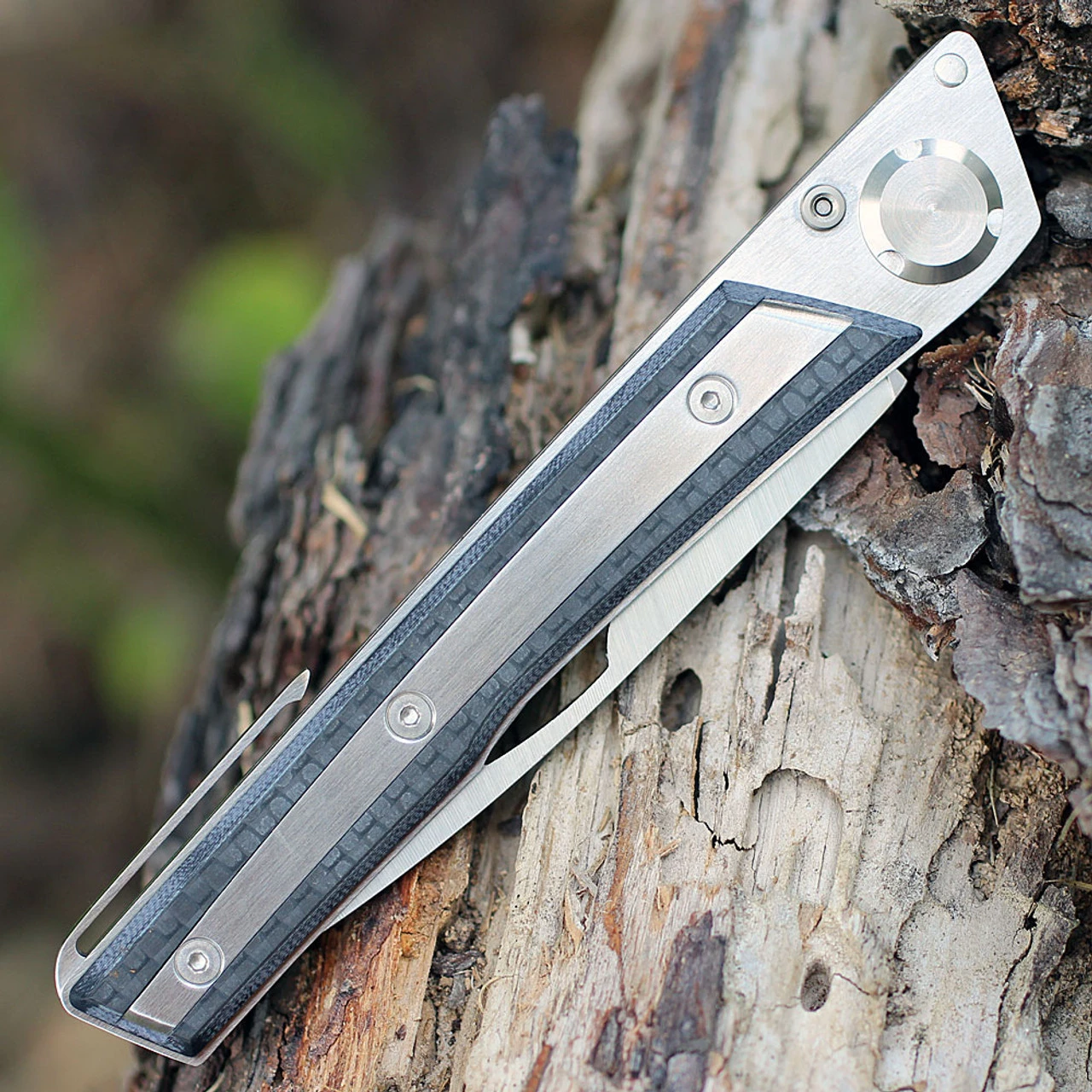 Actilam S4CFC Folder w/Clip, 3.5″ 14C28N Plain Blade, Carbon fiber Handle