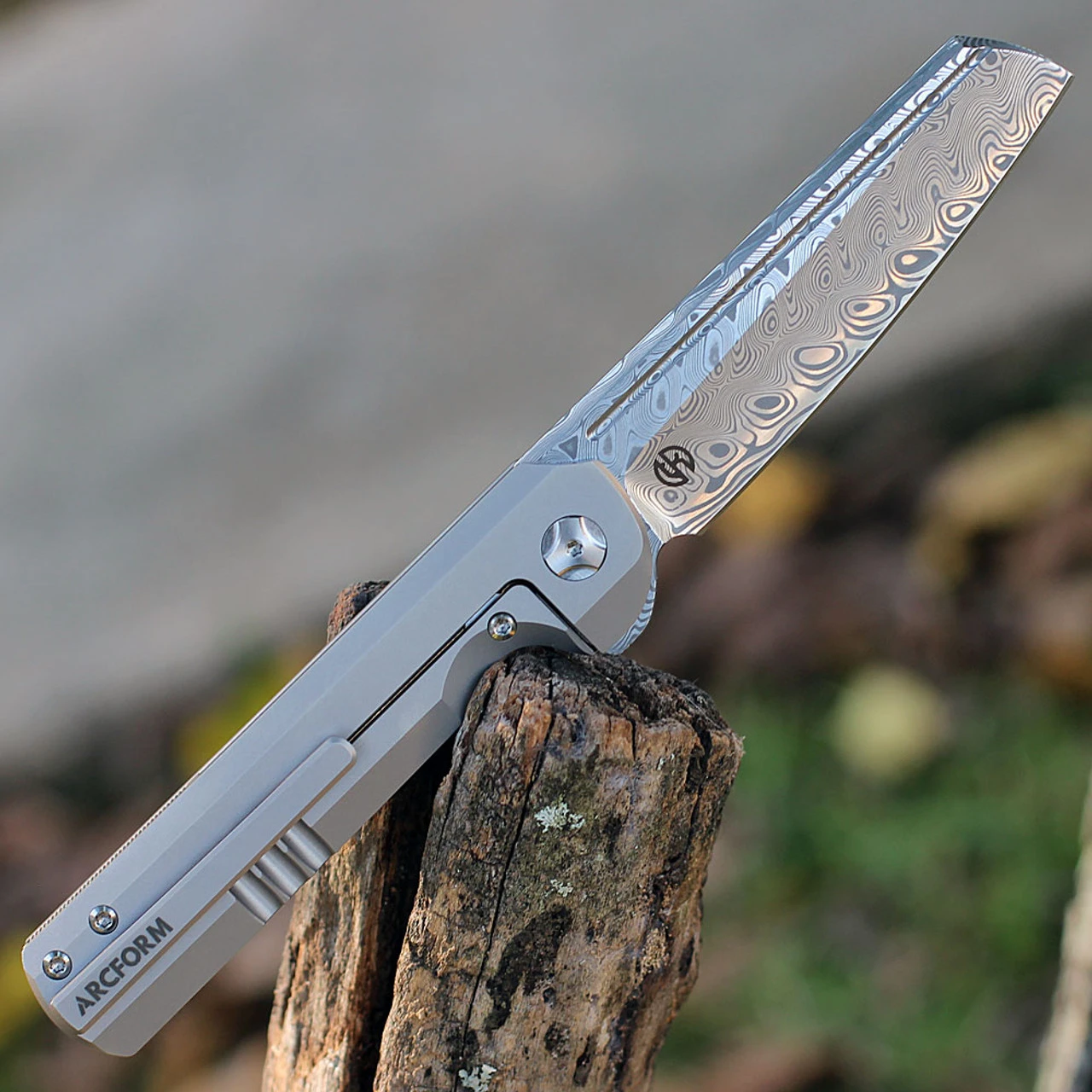 Arcform Slimfoot Folding – 3.5″ Damasteel Sheepsfoot Blade, Titanium Handle