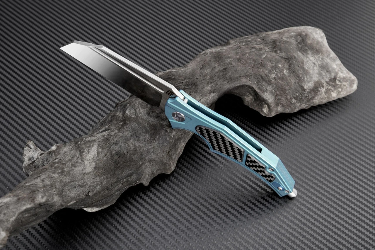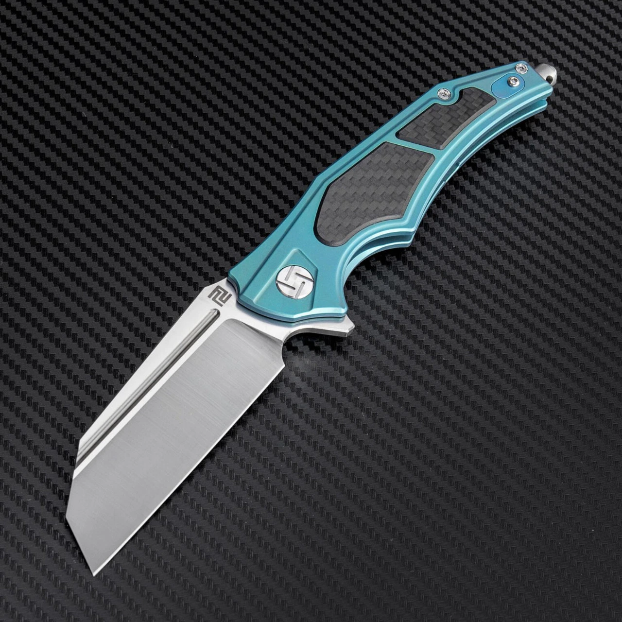 Artisan Apache ATZ1813GGNS, 3.82″ S35VN Plain Blade, Green Titanium/Carbon Fiber Handle
