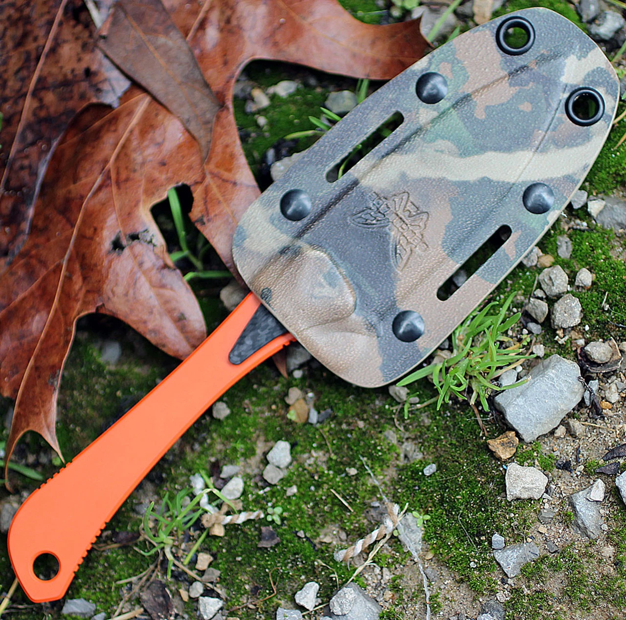 Benchmade 15200ORG Altitude Fixed 3.08″ S90V Orange DLC Blade, Carbon Fiber and G10 Scales, First Lite Fusion Camo Boltaron Sheath
