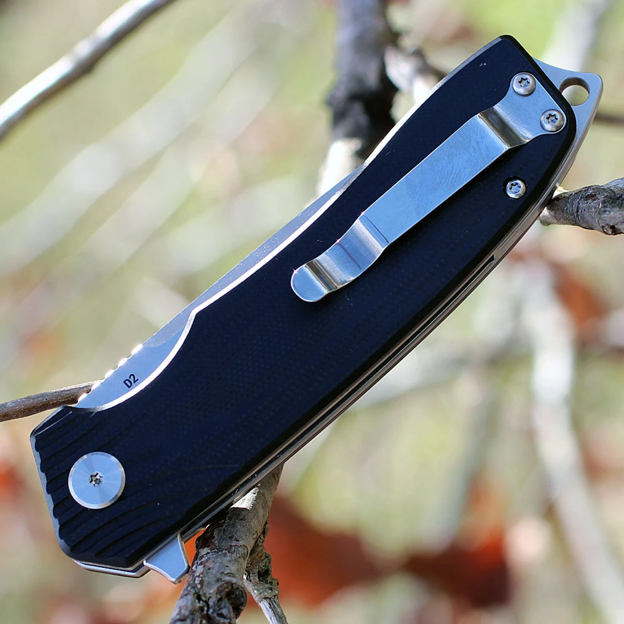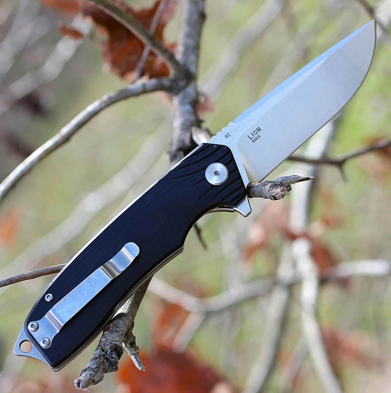 Bestech G01A Lion, 3.5″ D2 Plain Blade, Black G-10 Handle