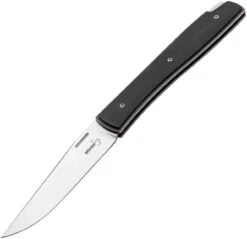 The Boker Plus Urban Trapper, designed by Brad Zinker, is one of the thinnest profile pocket knives in their range and is now available with an additional locking mechanism thanks to the new patented wire bracket backlock. Thanks to the space-saving wire bracket, no additional top spring is required, giving the blade significantly more space in the handle. The blade made of VG-10 has a fine hairline finish and is equipped with a nail nick. The structured handle scales made of black G10 always lie securely in the hand. With clip (tip-up).