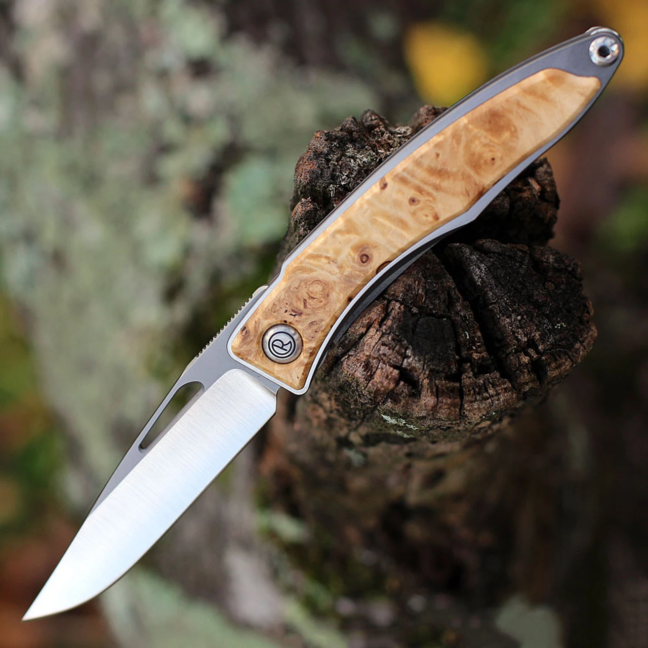 With hand polished finishes and a handle at 3.625″ long, the Mnandi is among our smallest and sleekest low-profile folders. Box Elder Burl, a type of Maple, is a wood known for its exquisite and sometimes rosy burls. Wood Inlays are made from natural materials, so you can expect a variation in color and wood grain.