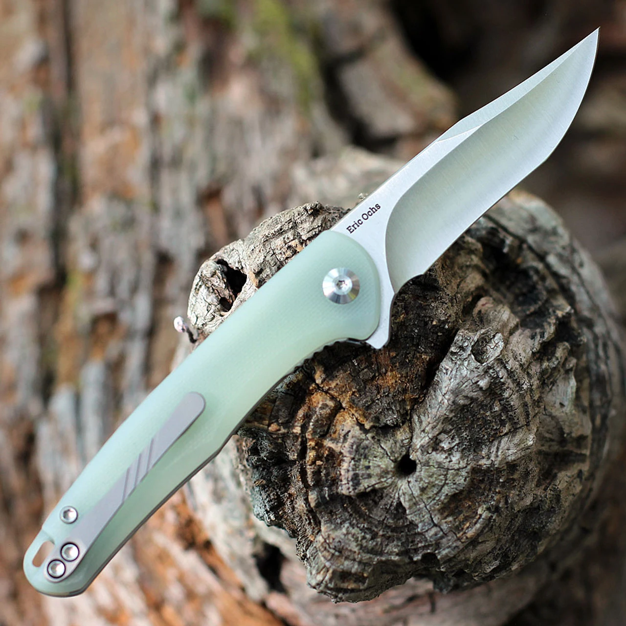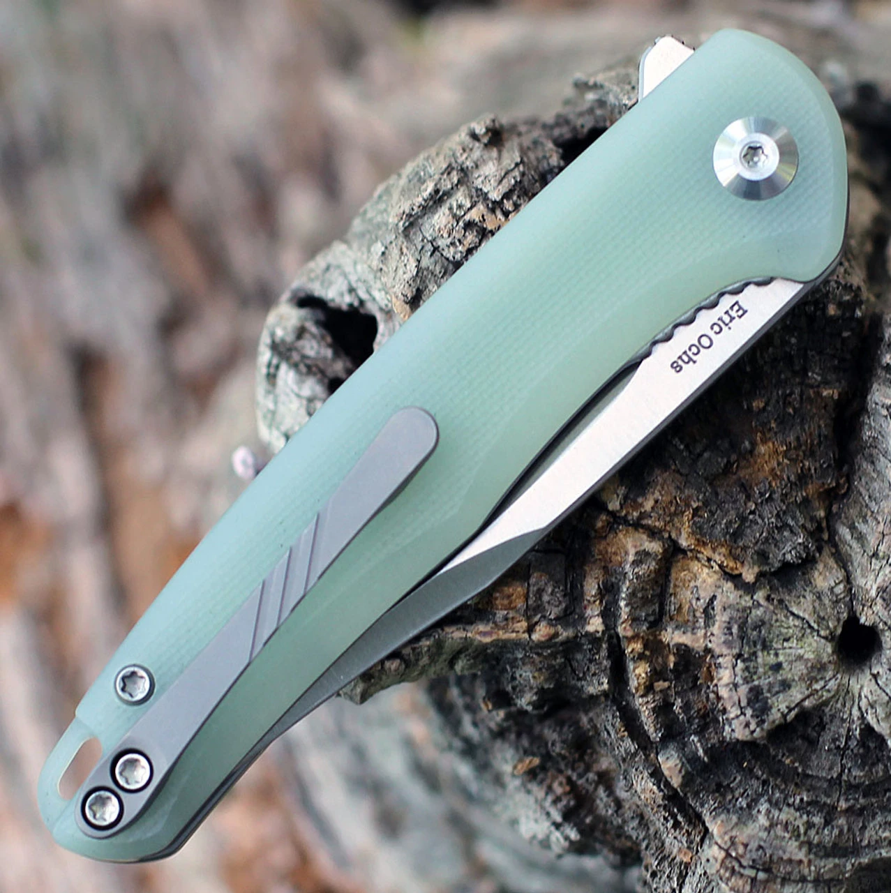 - Jade G-10 handle scales on steel liners.