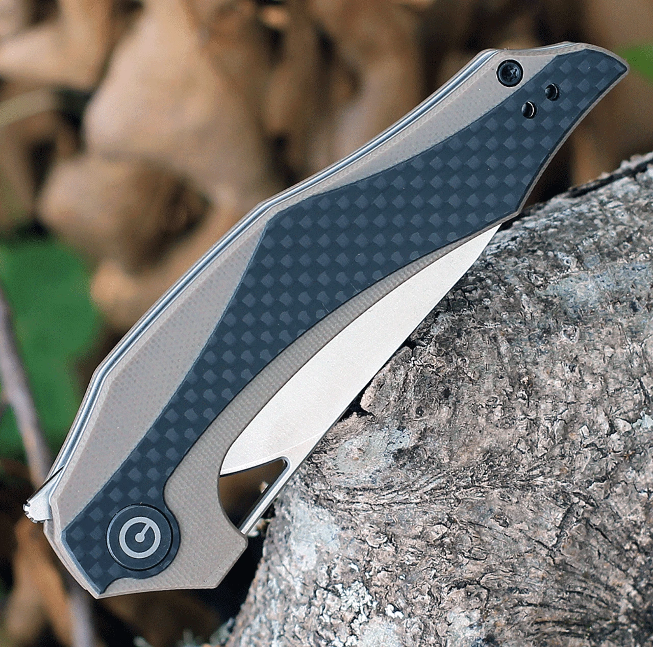 Add an affordable Elijah Isham design to your collection with the Plethiros from CIVIVI Knives. This Plethiros model is outfitted with a D2 steel blade and a tan G-10 handle with carbon fiber scales. Upgrade your EDC rotation forever with the CIVIVI Plethiros.