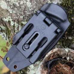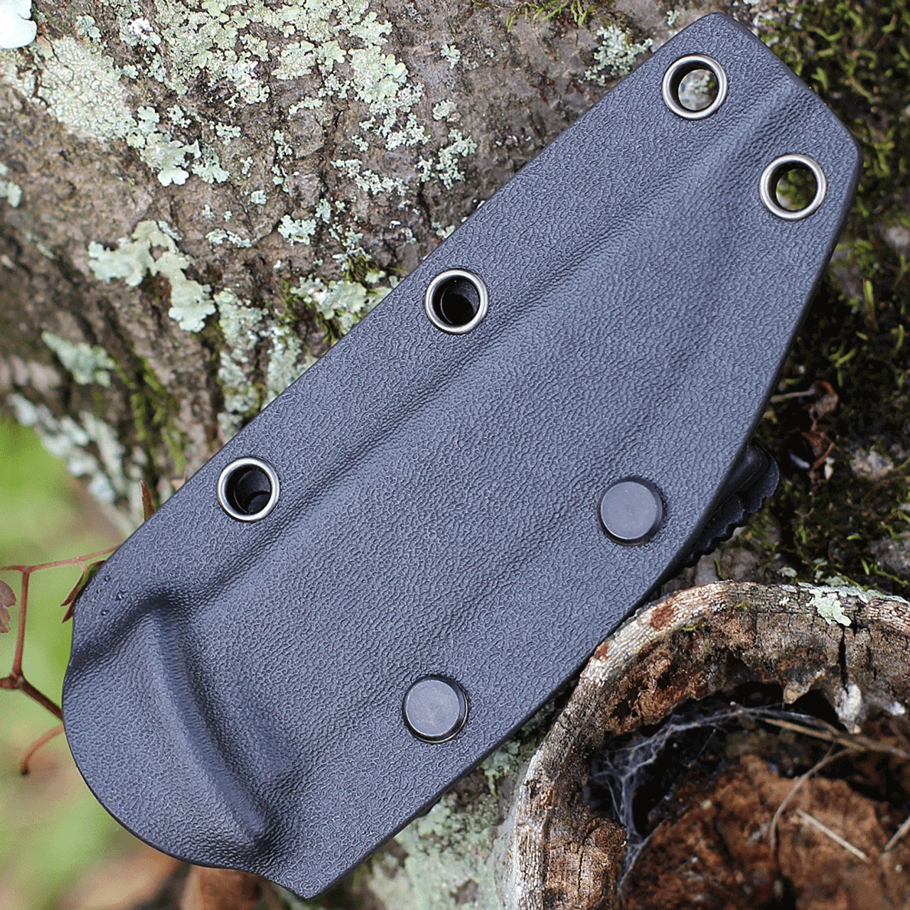 - T-Clip attachment, Kydex sheath, and a lanyard hold for carry.