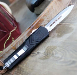 CobraTec Black FS-X OTF Knife CTKLBLKFS-XLDAG1SS, 3.75″ D2 Steel Dagger Serrated Blade, Black Aluminum Handle