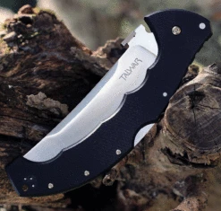 This Cold Steel Talwar is made with CPM-S35VN stainless steel blade and a black G-10 handle. The talwar features a 5.5″ satin straight back blade with thumb stud for easy opening and a back lock.